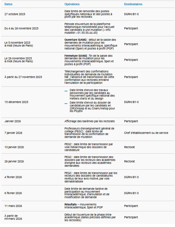 Calendrier officiel